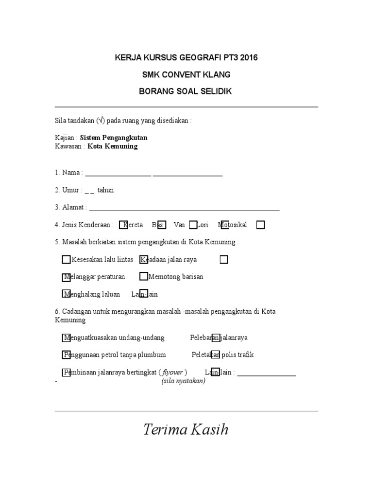 Contoh Borang Soal Selidik 2022 Word Pdf Geografi Pt3 Pelajar Universiti Produk Portal Cikgu